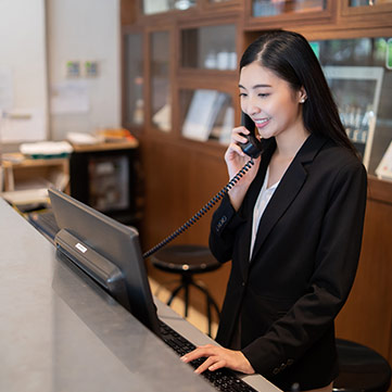 | 仕事内容 | 住み込み【寮完備】フロントスタッフ(リゾートホテル) ◇フロントにおける接客業務 ◇予約業務全般 ◇電話対応 |