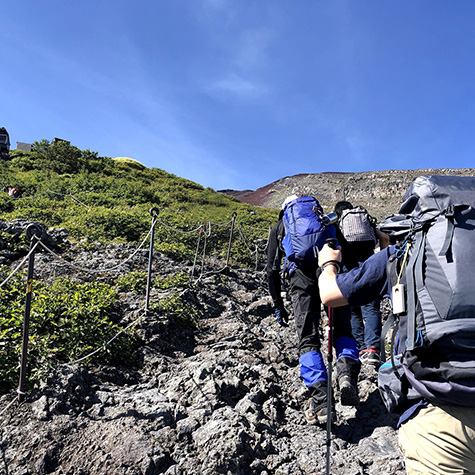 山頂を目指して登頂されるお客様へ、休憩のお手伝いをお願いいたします!