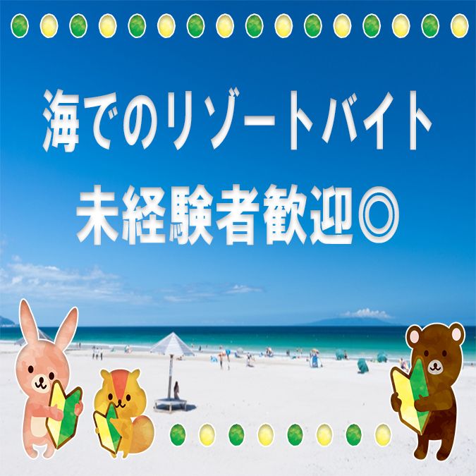 | 特長 | 未経験者可能/交通費支給/制服貸与/女性が活躍/海/観光地/食費無料/ワーホリ歓迎 |