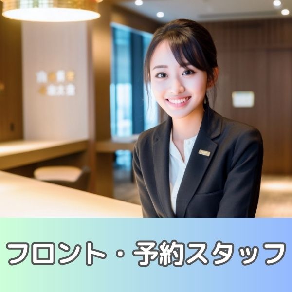 | 仕事内容 | 1)予約スタッフ(リゾートホテル) ◇予約受付 ◇接客・電話対応 ◇簡単な事務作業やPC入力業務 ◇その他付随業務 2)フロントスタッフ ◇受付業務 ◇チェックイン・チェックアウト業務 ◇簡単なPC作業 ◇その他付随業務 |