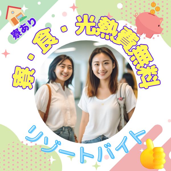 | 福利厚生・待遇 | ・寮費無料 ・光熱費無料 ・食費無料 ・赴任交通費支給(当社規定有) ・各種割増手当有(残業・深夜) ・施設利用可能 ・経験者や勤務期間延長時の時給交渉可 勤務地までの往復交通費全額支給 (規定あり) 寮費・食費・水道光熱費全てが無料なので 稼いだお金はぜ~んぶ貯金に回せます♪ 寮は個室なので プライベート・セキュリティーも万全♪ |