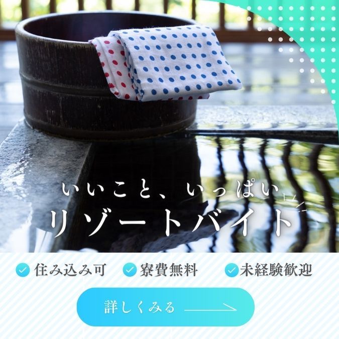 | 特長 | 未経験者可能/交通費支給/制服貸与/女性が活躍/高原・山/温泉地/観光地/食費無料 |