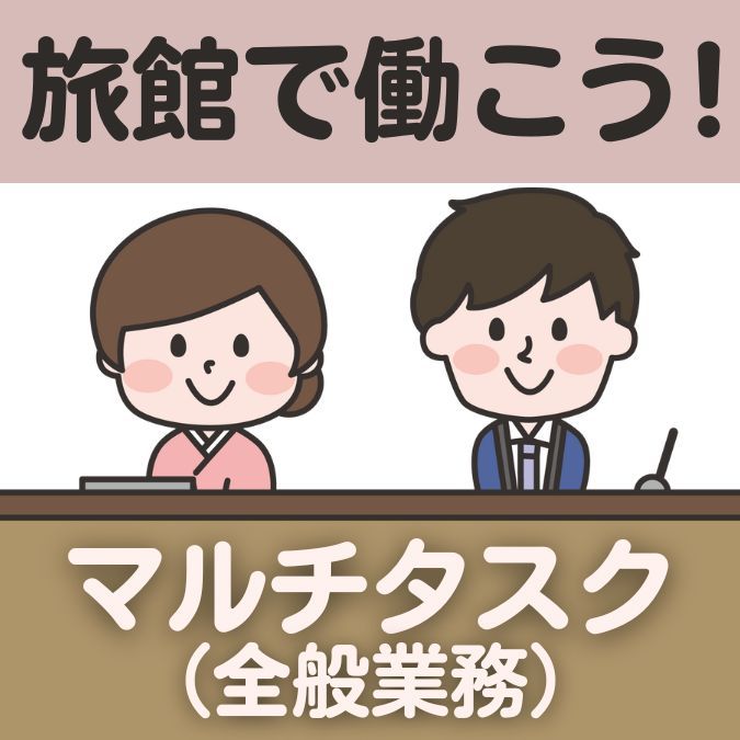 | 仕事内容 | <旅館のマルチタスク(業務全般)> ◇チェックイン・チェックアウト ◇お出迎え・お見送り ◇お部屋案内など ◇料理配膳(食事処・部屋出し) ◇洗い物 ◇お布団敷き ◇お風呂掃除 ◇準備・後片付け ◇その他付随業務 ※制服は作務衣(さむえ)を現地にて貸与 |
