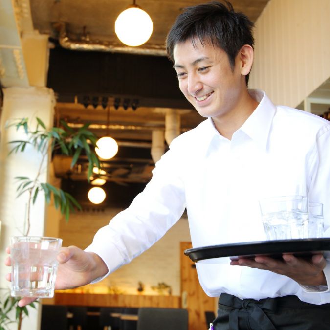 レストランでの接客や簡単な洗い物の業務で、簡単なお仕事なので未経験の方でも大丈夫です♪
