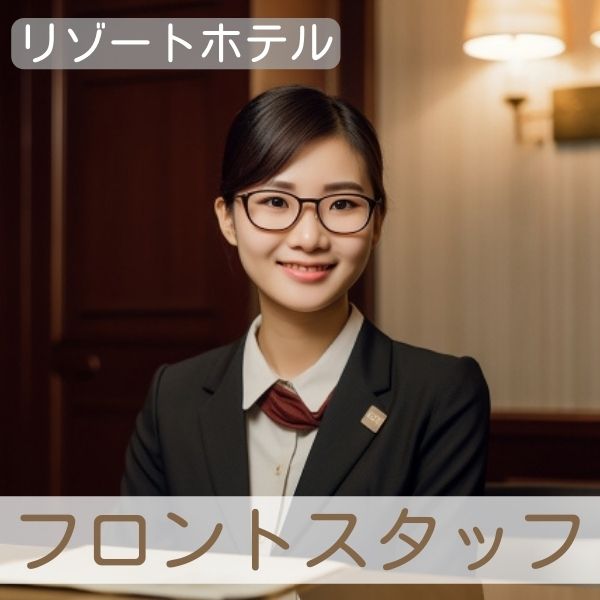 | 仕事内容 | フロントスタッフ(リゾートホテル) ●チェックイン・チェックアウト業務 ●電話応対 ●PC入力 ※その他付随業務 |