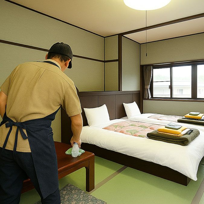 お客様が快適に過ごせるよう、客室やお風呂の清掃・施設のメンテナンスなどをお願いします。