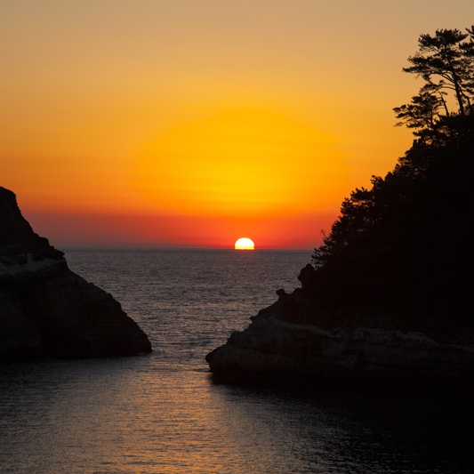海と夕日の絶景が望める堂ヶ島での接客業務(*^^)v