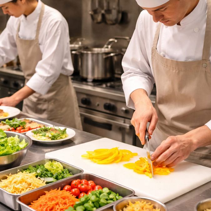 簡単な盛り付けや仕込み、洗い物などが中心のお仕事です。
